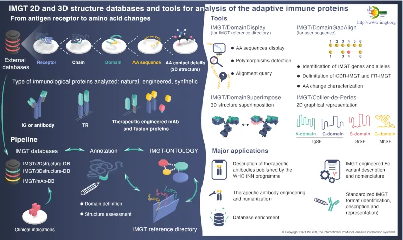 it is widely used by academics and industrials involved in basic research (diversity and evolution of adaptive immune response in jawed vertebrates), in medical and veterinary research (analysis of antibody and T-cell receptor repertoires in normal and pathological situations), and for standardized description of properties of therapeutical monoclonal antibody.